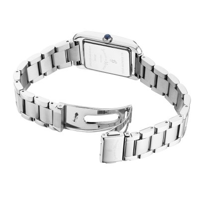 Este relógio Jacques du Manoir tem uma caixa de Inox com um diâmetro de 23 mm e está equipado com uma bracelete de Inox. A caixa possui um movimento Ronda e o relógio tem um vidro Mineral.