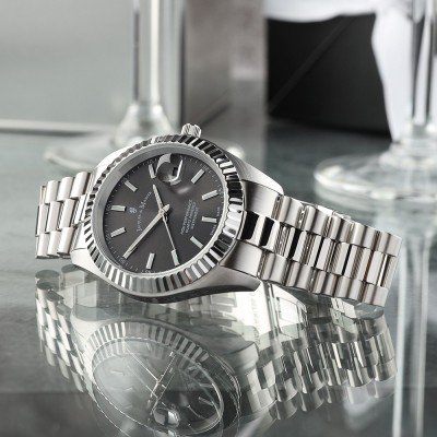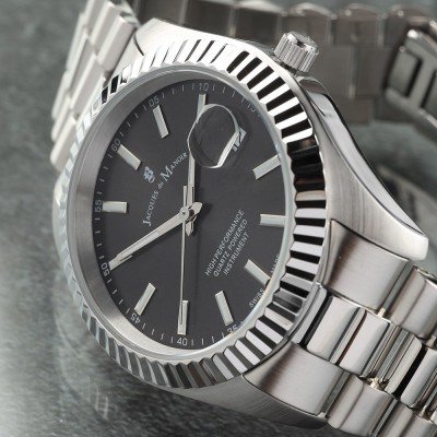 Este relógio Jacques du Manoir tem uma caixa de Inox com um diâmetro de 40 mm e está equipado com uma bracelete de Inox. A caixa possui um movimento Ronda e o relógio tem um vidro Mineral.