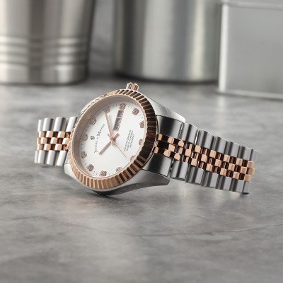 | Cor dos ponteiros (h,m,s) | Ouro rosa, Ouro rosa, Ouro rosa |