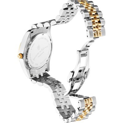 Este relógio Jacques du Manoir tem uma caixa de Inox com um diâmetro de 34 mm e está equipado com uma bracelete de Inox. A caixa possui um movimento Ronda e o relógio tem um vidro Mineral.