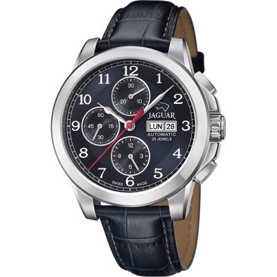 Desde a sua fundação em 1938, a Jaguar tem-se concentrado na relojoaria suíça de alta precisão, para alcançar a maior fiabilidade e exatidão. Este J975 Acamar da série "Le Chronographe" é um relógio automático com um movimento Valjoux 7750-3H104 de fabrico suíço; um calibre de qualidade e precisão comprovadas ao longo dos anos. A complicação do cronógrafo mede o tempo decorrido em unidades de 1 segundo durante 12 horas, 30 minutos e 60 segundos, e o seu ponteiro alongado dos minutos "toca" na faixa dos minutos para uma indicação precisa do tempo. Um vidro de safira antirreflexo assegura uma visibilidade excecional do mostrador e uma resistência aos riscos. É um relógio bonito e fiável que agradará certamente aos amantes de relógios clássicos para homem!