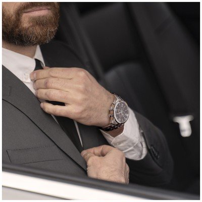 Este relógio Jaguar tem uma caixa de Inox com um diâmetro de 41 mm e está equipado com uma bracelete de Inox. A caixa possui um movimento Ronda e o relógio tem um vidro Safira.
