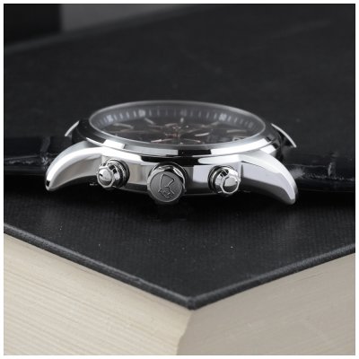 Este relógio Jaguar tem uma caixa de Inox com um diâmetro de 42 mm e está equipado com uma bracelete de couro. A caixa possui um movimento Ronda e o relógio tem um vidro Safira.