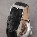 Este relógio Jaguar tem uma caixa de Inox com um diâmetro de 41 mm e está equipado com uma bracelete de couro. A caixa possui um movimento Ronda e o relógio tem um vidro Safira.