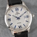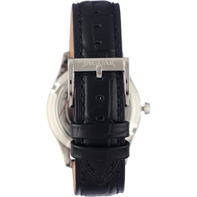 Este relógio Jaguar tem uma caixa de Inox com um diâmetro de 40 mm e está equipado com uma bracelete de couro. A caixa possui um movimento Ronda e o relógio tem um vidro Safira.