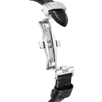 Este relógio Jaguar tem uma caixa de Inox com um diâmetro de 29 mm e está equipado com uma bracelete de couro. A caixa possui um movimento Ronda e o relógio tem um vidro Safira.