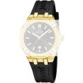Esta bracelete de relógio Jaguar é feita de borracha e está fixada ao relógio através de pinos em aço. A bracelete tem uma largura de 21 mm e fecha através de fecho. A bracelete não tem uma montagem a direito, o que significa que esta bracelete só é adequada para os relógios listados abaixo.