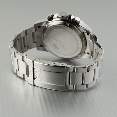 Este relógio Jaguar tem uma caixa de Inox com um diâmetro de 43 mm e está equipado com uma bracelete de Inox. A caixa possui um movimento Ronda e o relógio tem um vidro Mineral.