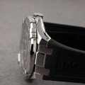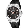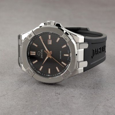 Este relógio Jaguar tem uma caixa de Inox com um diâmetro de 44 mm e está equipado com uma bracelete de borracha. A caixa possui um movimento Ronda e o relógio tem um vidro Safira.
