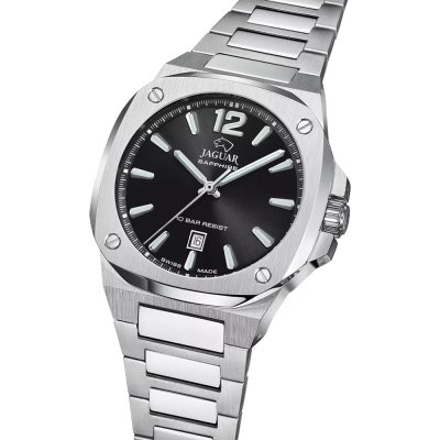Este relógio Jaguar tem uma caixa de Inox com um diâmetro de 41 mm e está equipado com uma bracelete de Inox. A caixa possui um movimento Ronda e o relógio tem um vidro Safira.