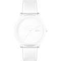 Esta bracelete de relógio Lacoste é feita de silicone e está fixada ao relógio através de pinos de pressão. A bracelete tem uma largura de 20 mm e fecha através de fecho. A bracelete tem uma montagem a direito, o que significa que esta bracelete é adequada para todos os relógios Lacoste com montagem da bracelete a direito.