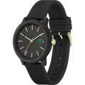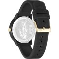 Este relógio Lacoste tem uma caixa de Resina com um diâmetro de 42 mm e está equipado com uma bracelete de borracha. A caixa possui um movimento Seiko e o relógio tem um vidro Mineral.