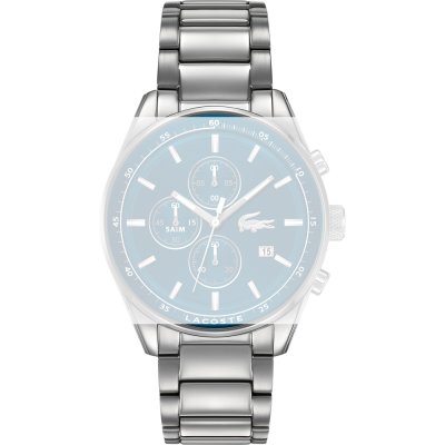 Esta bracelete de relógio Lacoste é feita de aço inoxidável e está fixada ao relógio através de pinos de pressão. A bracelete tem uma largura de 22 mm e fecha através de fivela dobrável com botões de pressão. A bracelete não tem uma montagem a direito, o que significa que esta bracelete só é adequada para os relógios listados abaixo.