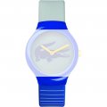 Esta bracelete de relógio Lacoste é feita de silicone e está fixada ao relógio através de pinos de pressão. A bracelete tem uma largura de 20 mm e fecha através de fecho. A bracelete não tem uma montagem a direito, o que significa que esta bracelete só é adequada para os relógios listados abaixo.