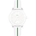 Esta bracelete de relógio Lacoste é feita de silicone e está fixada ao relógio através de pinos de pressão. A bracelete tem uma largura de 17 mm e fecha através de fecho. A bracelete tem uma montagem a direito, o que significa que esta bracelete é adequada para todos os relógios Lacoste com montagem da bracelete a direito.