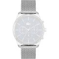 Esta bracelete de relógio Lacoste é feita de aço inoxidável e está fixada ao relógio através de pinos de pressão. A bracelete tem uma largura de 20 mm e fecha através de fecho milanese. A bracelete tem uma montagem a direito, o que significa que esta bracelete é adequada para todos os relógios Lacoste com montagem da bracelete a direito.
