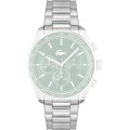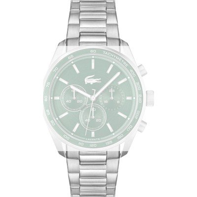 Esta bracelete de relógio Lacoste é feita de aço inoxidável e está fixada ao relógio através de pinos de pressão. A bracelete tem uma largura de 21 mm e fecha através de fivela dobrável com botões de pressão. A bracelete não tem uma montagem a direito, o que significa que esta bracelete só é adequada para os relógios listados abaixo.