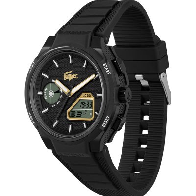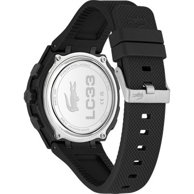 Este relógio Lacoste tem uma caixa de Resina com um diâmetro de 44 mm e está equipado com uma bracelete de borracha. A caixa possui um movimento Seiko e o relógio tem um vidro Mineral.