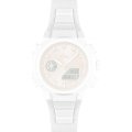 Esta bracelete de relógio Lacoste é feita de resina e está fixada ao relógio através de pinos em aço. A bracelete tem uma largura de 22 mm e fecha através de fecho. A bracelete não tem uma montagem a direito, o que significa que esta bracelete só é adequada para os relógios listados abaixo.