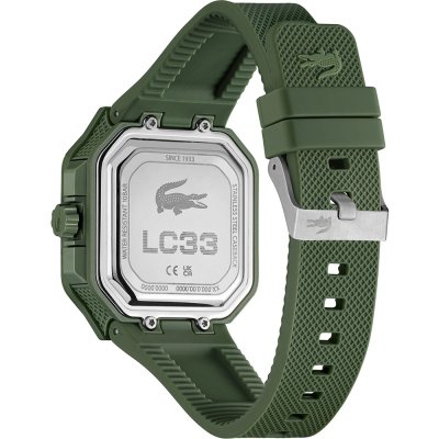 Este relógio Lacoste tem uma caixa de Resina com um diâmetro de 44 mm e está equipado com uma bracelete de borracha.