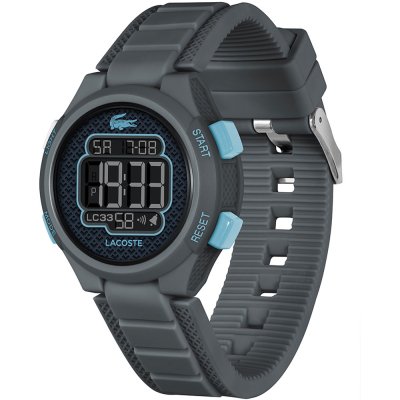 Este relógio Lacoste tem uma caixa de Resina com um diâmetro de 34 mm e está equipado com uma bracelete de borracha.