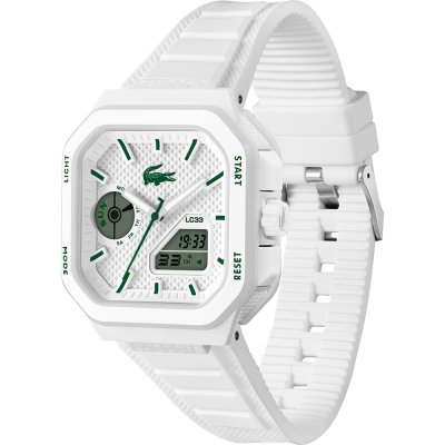 Este relógio Lacoste tem uma caixa de Resina com um diâmetro de 44 mm e está equipado com uma bracelete de borracha. A caixa possui um movimento Bao Jie e o relógio tem um vidro Mineral.