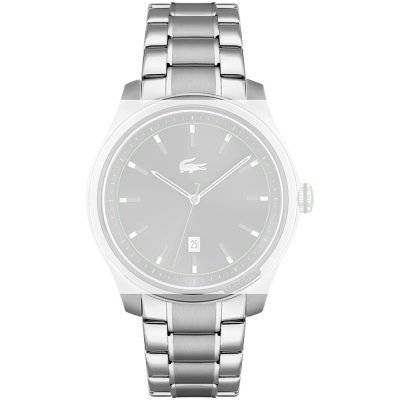 Esta bracelete de relógio Lacoste é feita de aço inoxidável e está fixada ao relógio através de pinos de pressão. A bracelete tem uma largura de 21 mm e fecha através de fivela dobrável com botões de pressão. A bracelete não tem uma montagem a direito, o que significa que esta bracelete só é adequada para os relógios listados abaixo.