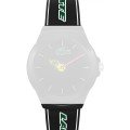 Esta bracelete de relógio Lacoste é feita de silicone e está fixada ao relógio através de pinos de pressão. A bracelete tem uma largura de 19 mm e fecha através de fecho. A bracelete não tem uma montagem a direito, o que significa que esta bracelete só é adequada para os relógios listados abaixo.