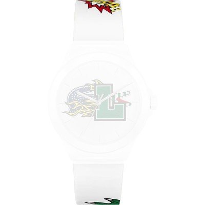 Esta bracelete de relógio Lacoste é feita de silicone e está fixada ao relógio através de pinos de pressão. A bracelete tem uma largura de 21 mm e fecha através de fecho. A bracelete não tem uma montagem a direito, o que significa que esta bracelete só é adequada para os relógios listados abaixo.