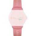 Esta bracelete de relógio Lacoste é feita de silicone e está fixada ao relógio através de pinos de pressão. A bracelete tem uma largura de 19 mm e fecha através de fecho. A bracelete não tem uma montagem a direito, o que significa que esta bracelete só é adequada para os relógios listados abaixo.