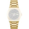 Esta bracelete de relógio Lacoste é feita de aço inoxidável e está fixada ao relógio através de pinos em aço. A bracelete tem uma largura de 26 mm e fecha através de fivela dobrável com botões de pressão. A bracelete não tem uma montagem a direito, o que significa que esta bracelete só é adequada para os relógios listados abaixo.