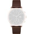 Esta bracelete de relógio Lacoste é feita de couro e está fixada ao relógio através de pinos de pressão. A bracelete tem uma largura de 21 mm e fecha através de fecho. A bracelete tem uma montagem a direito, o que significa que esta bracelete é adequada para todos os relógios Lacoste com montagem da bracelete a direito.