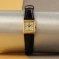 Este relógio LIP tem uma caixa de Inox com um diâmetro de 21 mm e está equipado com uma bracelete de couro. A caixa possui um movimento Ronda e o relógio tem um vidro Mineral.
