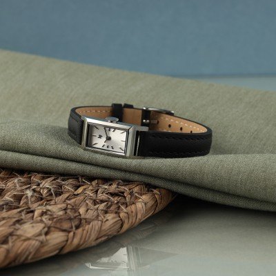Este relógio LIP tem uma caixa de Inox com um diâmetro de 13 mm e está equipado com uma bracelete de couro. A caixa possui um movimento Ronda e o relógio tem um vidro Mineral.