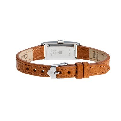 Este relógio LIP tem uma caixa de Inox com um diâmetro de 13 mm e está equipado com uma bracelete de couro. A caixa possui um movimento Ronda e o relógio tem um vidro Mineral.