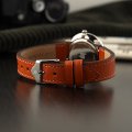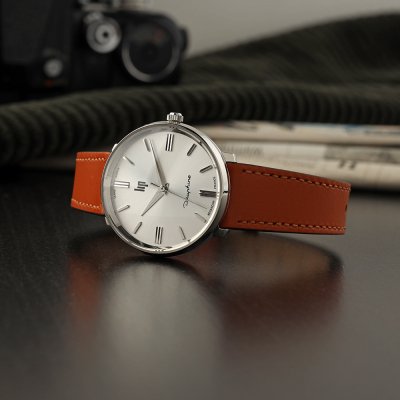 Este relógio LIP tem uma caixa de Inox com um diâmetro de 29 mm e está equipado com uma bracelete de couro. A caixa possui um movimento Ronda e o relógio tem um vidro Safira.