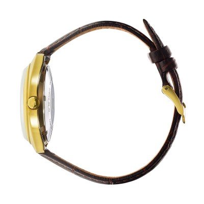 Este relógio LIP tem uma caixa de Inox com um diâmetro de 35 mm e está equipado com uma bracelete de couro. A caixa possui um movimento Ronda e o relógio tem um vidro Mineral.