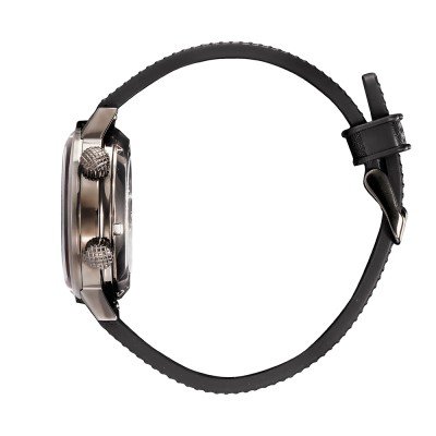Este relógio LIP tem uma caixa de Inox com um diâmetro de 41 mm e está equipado com uma bracelete de borracha. A caixa possui um movimento Miyota e o relógio tem um vidro Safira anti-reflexo única.