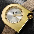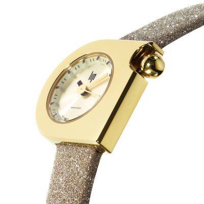 Este relógio LIP tem uma caixa de Inox com um diâmetro de 30 mm e está equipado com uma bracelete de couro. A caixa possui um movimento Ronda e o relógio tem um vidro Mineral.