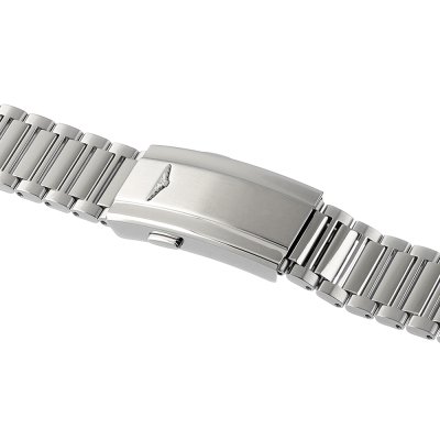 Esta bracelete de relógio Longines é feita de aço inoxidável e está fixada ao relógio através de pinos de pressão. A bracelete tem uma largura de 19 mm e fecha através de fivela dobrável com botões de pressão. A bracelete não tem uma montagem a direito, o que significa que esta bracelete só é adequada para os relógios listados abaixo.
