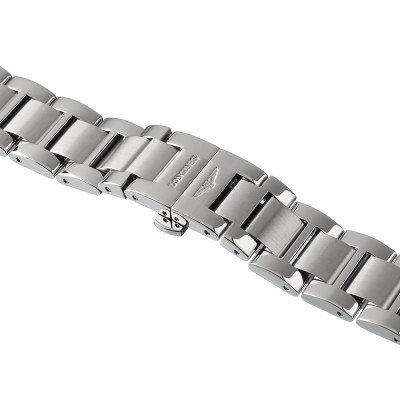Esta bracelete de relógio Longines é feita de aço inoxidável e está fixada ao relógio através de pinos de pressão. A bracelete tem uma largura de 20 mm e fecha através de fivela butterfly com botões de pressão. A bracelete não tem uma montagem a direito, o que significa que esta bracelete só é adequada para os relógios listados abaixo.