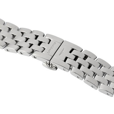 Esta bracelete de relógio Longines é feita de aço inoxidável e está fixada ao relógio através de pinos de pressão. A bracelete tem uma largura de 15 mm e fecha através de fivela butterfly com botões de pressão. A bracelete não tem uma montagem a direito, o que significa que esta bracelete só é adequada para os relógios listados abaixo.