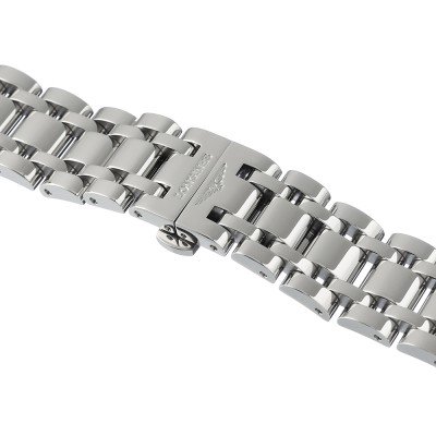 Esta bracelete de relógio Longines é feita de aço inoxidável e está fixada ao relógio através de pinos de pressão. A bracelete tem uma largura de 19 mm e fecha através de fivela butterfly com botões de pressão. A bracelete não tem uma montagem a direito, o que significa que esta bracelete só é adequada para os relógios listados abaixo.
