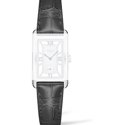 Esta bracelete de relógio Longines é feita de couro e está fixada ao relógio através de pinos carregados por mola de liberação rápida. A bracelete tem uma largura de 17 mm. A bracelete tem uma montagem a direito, o que significa que esta bracelete é adequada para todos os relógios Longines com montagem da bracelete a direito.