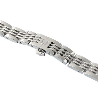 Esta bracelete de relógio Longines é feita de aço inoxidável e está fixada ao relógio através de pinos de pressão. A bracelete tem uma largura de 10 mm e fecha através de fivela butterfly com botões de pressão. A bracelete não tem uma montagem a direito, o que significa que esta bracelete só é adequada para os relógios listados abaixo.