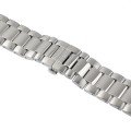 Esta bracelete de relógio Longines é feita de aço inoxidável e está fixada ao relógio através de pinos de pressão. A bracelete tem uma largura de 22 mm e fecha através de fivela butterfly com botões de pressão. A bracelete não tem uma montagem a direito, o que significa que esta bracelete só é adequada para os relógios listados abaixo.