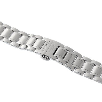 Esta bracelete de relógio Longines é feita de aço inoxidável e está fixada ao relógio através de pinos de pressão. A bracelete tem uma largura de 13 mm e fecha através de fivela butterfly com botões de pressão. A bracelete não tem uma montagem a direito, o que significa que esta bracelete só é adequada para os relógios listados abaixo.