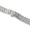 Esta bracelete de relógio Longines é feita de aço inoxidável e está fixada ao relógio através de pinos de pressão. A bracelete tem uma largura de 16 mm e fecha através de fivela butterfly com botões de pressão. A bracelete não tem uma montagem a direito, o que significa que esta bracelete só é adequada para os relógios listados abaixo.