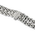 Esta bracelete de relógio Longines é feita de aço inoxidável e está fixada ao relógio através de pinos de pressão. A bracelete tem uma largura de 20 mm e fecha através de fivela butterfly com botões de pressão. A bracelete não tem uma montagem a direito, o que significa que esta bracelete só é adequada para os relógios listados abaixo.