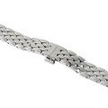 Esta bracelete de relógio Longines é feita de aço inoxidável e está fixada ao relógio através de pino e tubo. A bracelete tem uma largura de 9 mm e fecha através de fivela butterfly com botões de pressão. A bracelete não tem uma montagem a direito, o que significa que esta bracelete só é adequada para os relógios listados abaixo.